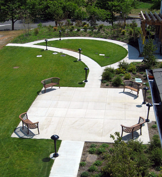Fazio Associates was responsible for the overall site planning and landscape design for the project. The plan focused on maintaining existing trees for immediate scale, connecting the Services Building to the new Angle Lake Court, while being sensitive towards the various user groups and program elements. One of the central components to the site planning included a children’s play-area, which acted as an extension of the internal Childcare and Multi-Use room. Similar materials, colors and textures were used in some of the ground-plane elements in both to provide a seamless transition, and complement the use of the play area to accommodate various age groups and maximize the efficiency and safety for the children and their childcare staff. Since children are wired to receive and utilize sensory input from day one, it was also important to provide different types of sensory play elements into the design along with play equipment that would span a large age group. Also, an area for a P-patch was incorporated into the site to be shared by the senior housing occupants and the childcare after school programs.